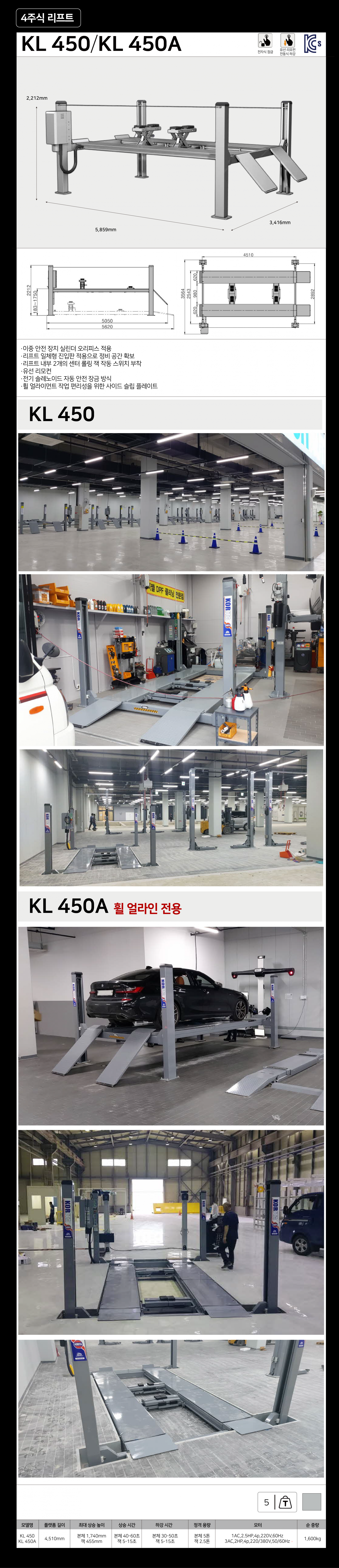 4주식 리프트 5톤 KL 450 / KL 450A (휠 얼라인 전용)