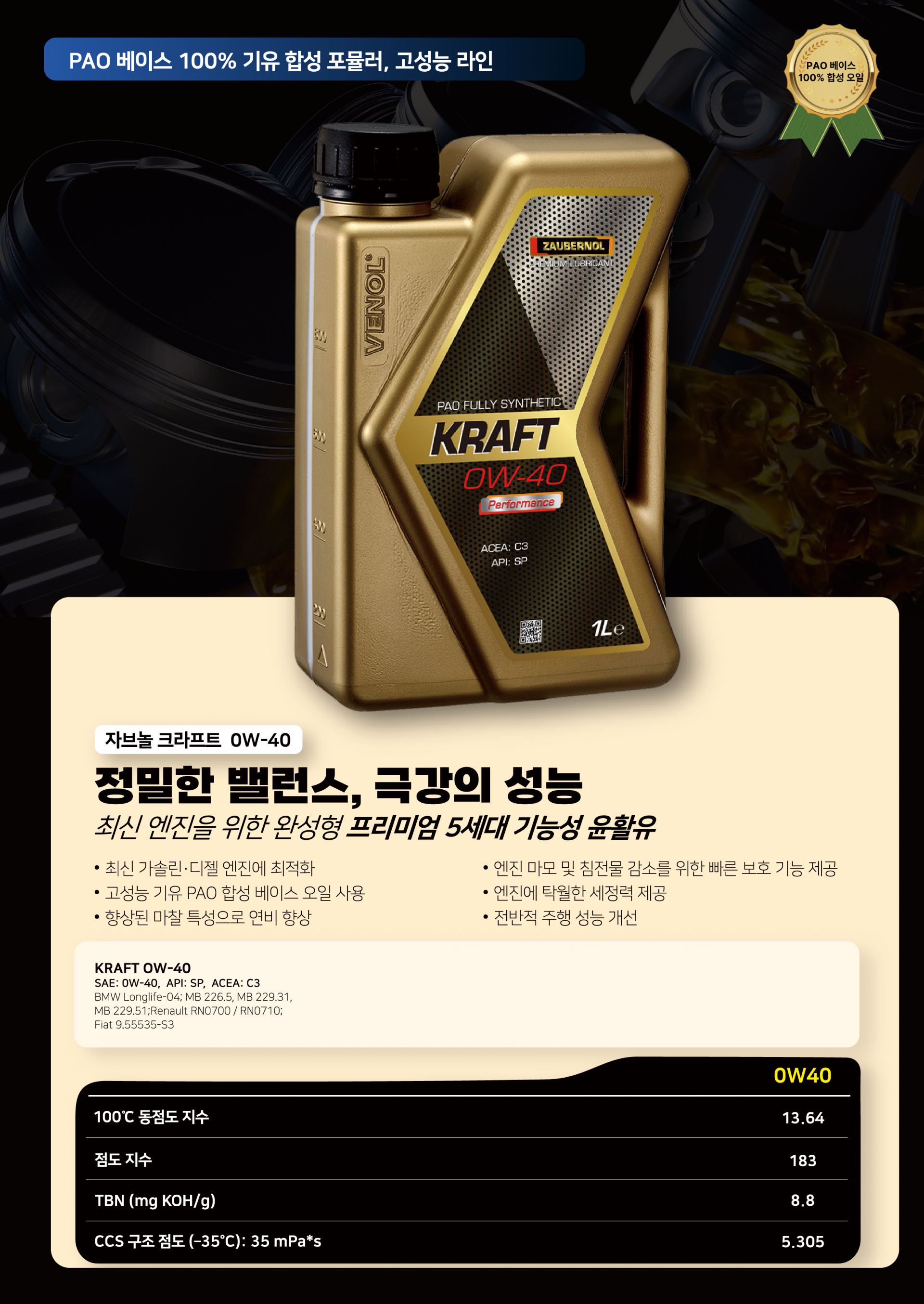엔진 오일 - 자브놀 크라프트 KRAFT 0W40 C3 1L