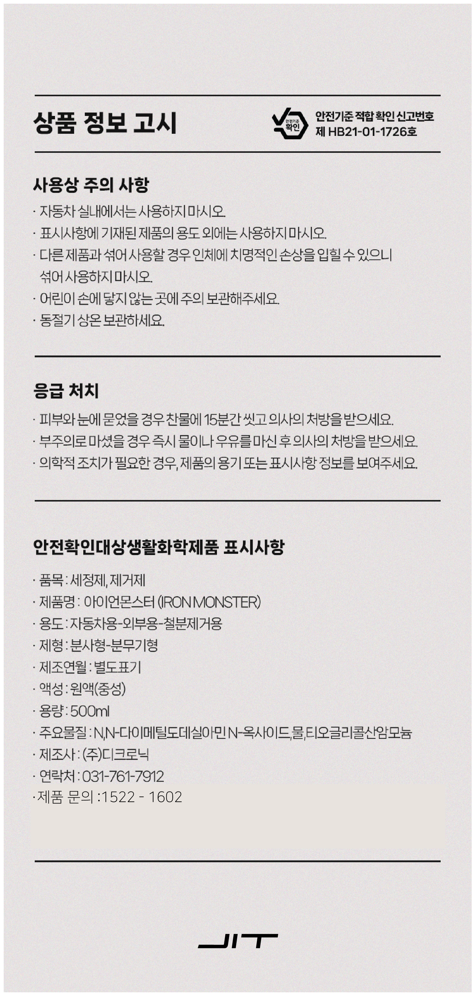 디크로닉 아이언몬스터 휠 철분 제거제 500ml