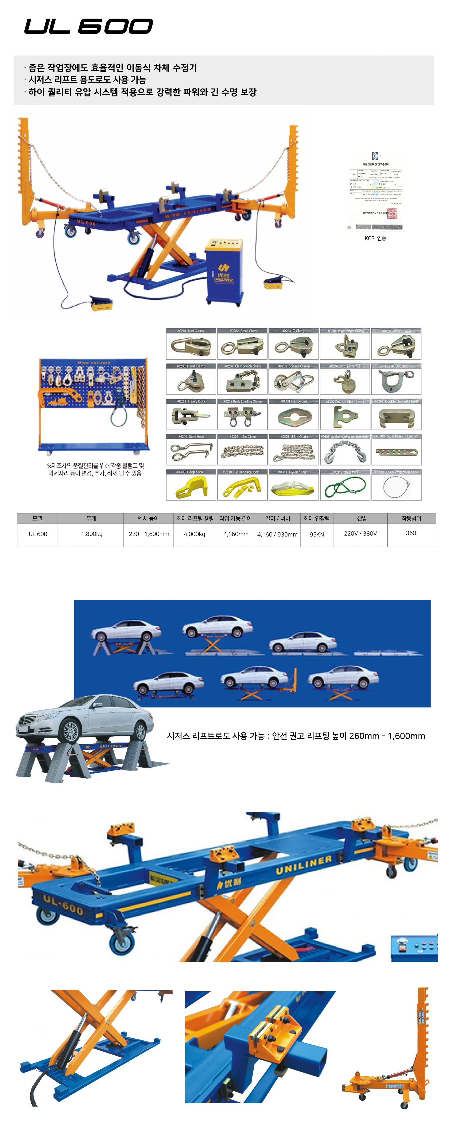 시저스 리프트로도 활용 가능한 이동식 차체 수정기