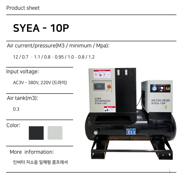 스크류 콤프레셔 인버터 저소음 10P